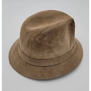 This is a vintage Totes Light Brown Suede Fedora Hat