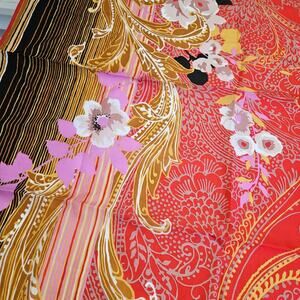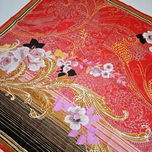 Vintage Totes Rain Scarf Water Repellent Floral Paisley Print Red Gold Black