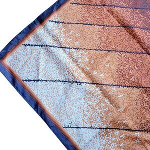 This Totes polyester square scarf measures 26.25 inches square and is in excellent condition. One side of the care tag has come loose. Be sure to look at all photos for a complete description. NOTE: Pictures have been lightened slightly to show detail.