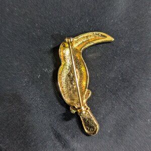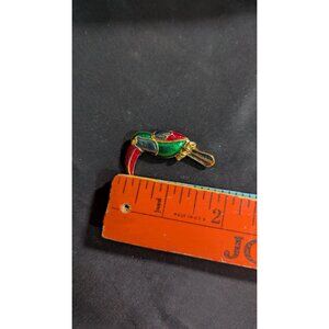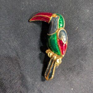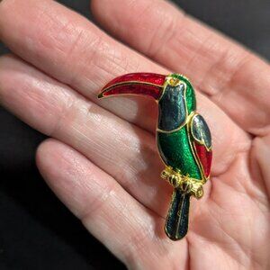 Vintage Toucan Pin Brooch Cloisonné Style Red Green Black Goldtone Bird Jewelry