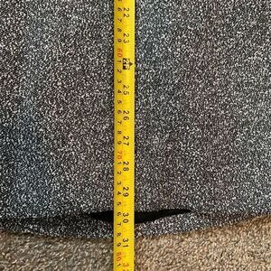 Vintage Touch black/grey boucle textured long line blazer jacket. This coat is long sleeved, with a collar, and buttons for a closure. There are no pockets, and it is unlined. Slightly boxy fit.