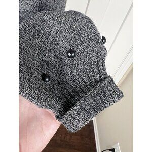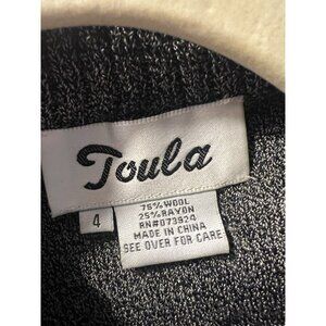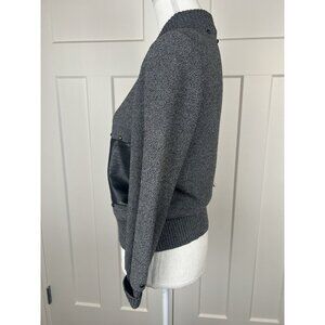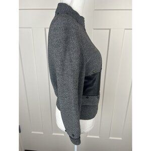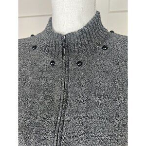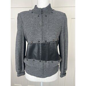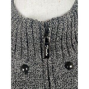 Vintage Toula Santana Knit Wool Zip Up Sweater Marled Black Leather Women's Sz 4