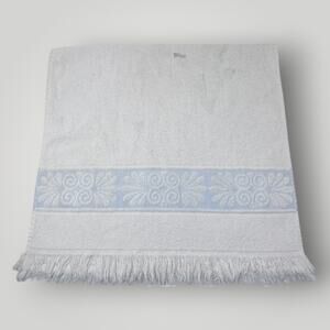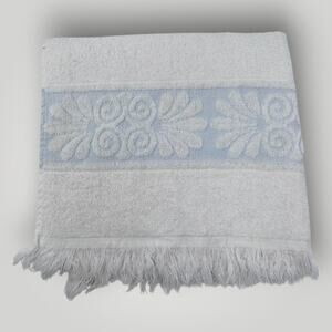 Vintage Towel Cannon Monticello Made in USA Cotton Blend Sculpted Fringed Blue