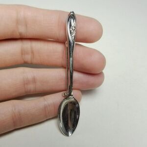 Vintage Towel Silver Tone Spoon Shape Brooch, Utensil Lapel Pin, Novelty Figural