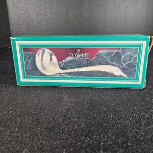 A Towle Silversmith, "Copenhagen" Silverplate 7 1/8 inch gravy ladle in original box. It doesn't appear to have been used. Does need a little polishing to shine it up. Non-smoking pet free home.