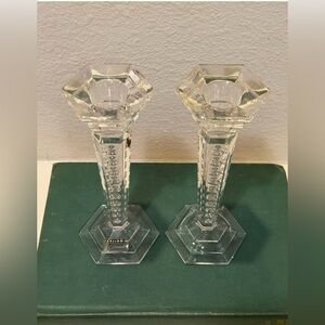 Pretty Vintage Towle Lead Crystal Candlestick Holders Made in Austria (Per sticker on base)