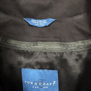 The Vintage Towncraft Black Trench Coat is a classic piece from the 1980s, featuring a removable liner for added versatility. Made from cotton, this original overcoat exudes a timeless trench coat/mac look, perfect for any masculine vintage wardrobe. With its United States origin and regular fit, this coat is a stylish and durable addition for any man looking to make a statement with his fashion choices.