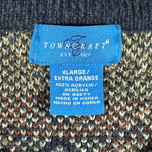 Vintage Towncraft Sweater Adult EXTRA LARGE Black Brown Argyle Knit Autumn 90s