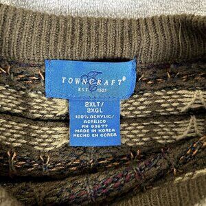 Vintage Towncraft Sweater Mens 2XL Brown Argyle Chunky Pullover Grandpa 90s