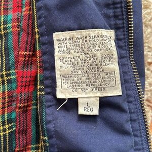 Vintage Towne London Fog Navy Elastic Waist Red Plaid Lining Winter Coat Large