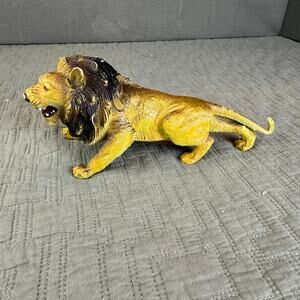 Vintage Toy Animal Lion Figure 90s 80s Plastic Rubber PVC Yellow Roaring