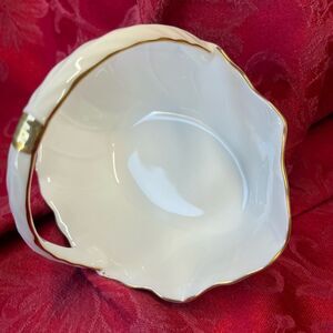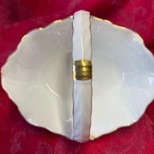 Really cute Vintage Toyo Elegance Trinket Basket. Bright white with a single band of gold on top of the handle.