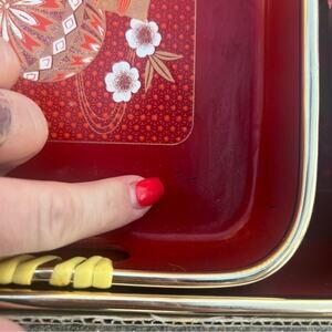 Vintage Toyo Japan Laquerware Nesting Tray Set 3 Maroon Metallic Oriental in box