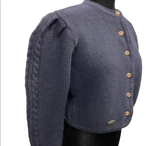 Vintage Trachtenmoden Alpentraum Navy Wool Knit Cropped Sweater Puff Sleeve