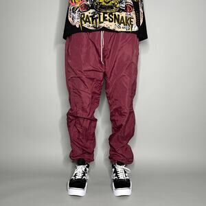 Vintage Track Pants Maroon Red Polyester Joggers Union Made in USA Blue Star 90s