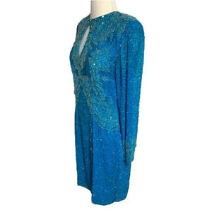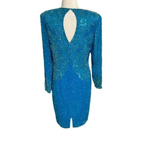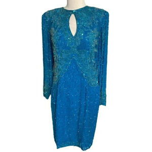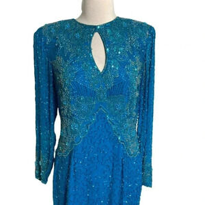 Vintage Tracy Lynn Evening 12 blue 100% silk hand beaded formal dress