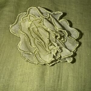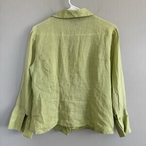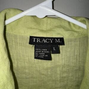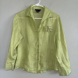 Vintage Tracy M. Woman’s Button Up Shirt 100% Linen Green Floral Accent S L