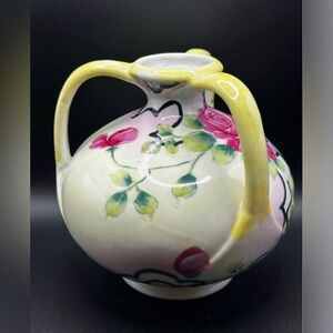 Vintage Trademarked Hand Painted Floral Ceramic Three Handled Vase. Vintage, possibly antique, art nouveau style vase.