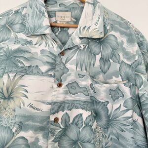 Vintage Trader Bay Hawaiian Shirt Blue & White Aloha Shirt Adult Mens L Soft 90s