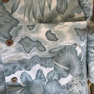 The Vintage Trader Bay Hawaiian Shirt in Blue & White is a retro-inspired button-up shirt perfect for a variety of occasions including travel, weddings, parties, and casual wear. Made of breathable polyester fabric, this shirt features a collared neckline, short sleeves, and a camp collar style. The tropical pattern with accents of buttons and a logo gives it a fun and colorful Hawaiian theme, ideal for those who love the beach, outdoor activities, or a nostalgic 90s vibe. The size L shirt is machine washable and suitable for all seasons, making it a versatile and stylish addition to any man's wardrobe.