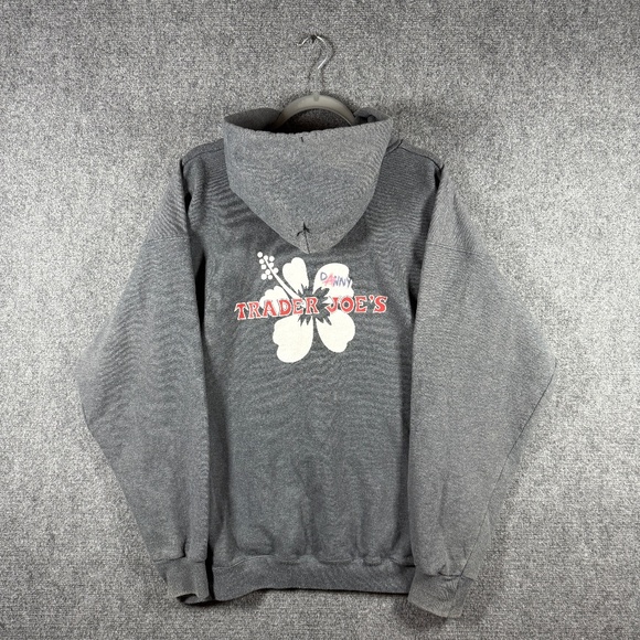 Vintage Trader Joe's Full Zip Hoodie Hanes Ultimate Cotton Gray Mens Size Large