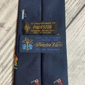 Vintage Trader Vic's Embroidered Golf Themed Navy Tie