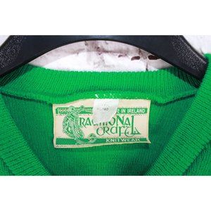 Vintage Traditional Craft Green Knitwear Ireland Logo V-Neck Sweater 38-40
