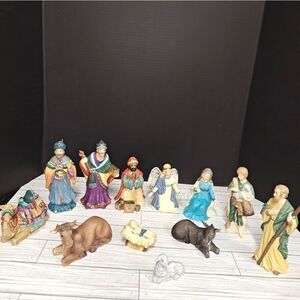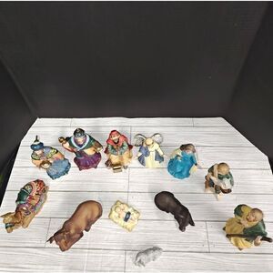 Vintage Traditions 12 Piece Porcelain Holiday Nativity Set Hand Painted #75177. Has wear from age use and storage. Baby Jesus has a broken hand. See pictures. Sold as is.
