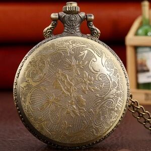 Add a touch of vintage charm to your home with this intricately designed pocket watch. Featuring a classic train motif, this gold and black clock is perfect for any decor style.