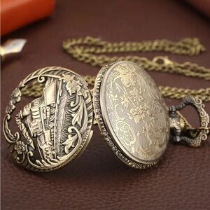 Vintage Train Design Picket Watch Gold and Black. Perfect Gift for Travelers