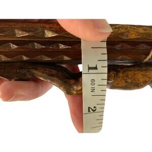 This Vintage Tramp Art crucifix, standing at 15.5 inches, is a raw and poignant testament to grassroots devotion. The entire form is hewn from humble trench wood, its surface a deeply textured landscape of countless notched and layered chips, a hallmark of the self-taught tramp art tradition. The figure of Christ, simplified yet powerfully expressive, emerges from this intricately carved, geometric wilderness, appearing to both suffer from and be cradled by the painstaking handiwork that surrounds Him. There are no smooth surfaces or gilded accents here; its beauty lies in its rustic, almost primitive vigor, each chip and groove telling a story of patience, faith, and the transformative power of a simple blade. This cross carries a profound, tangible humility, a sacred object shaped not by a master's studio but by the hands of an itinerant soul.