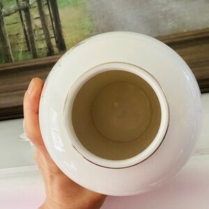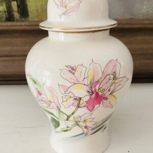 Vintage Translucent Bone China Ginger Jar White Gold Pink Floral Japan. FLAW: the knob on the lid has been repaired (glued), as shown in photos.