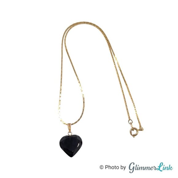 Vintage gold tone pendant necklace featuring a translucent brown faceted stone heart pendant hanging on a cobra style chain.
