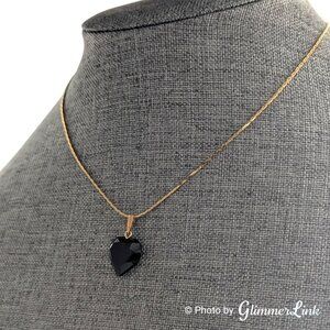 Vintage Translucent Faceted Brown Stone Heart Pendant Gold Tone Chain Necklace