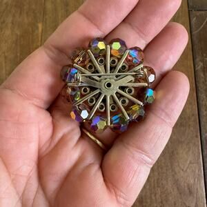 Vintage Transparent Brown AB Crystal Prong Set Rivet Bead Brooch Jewelry