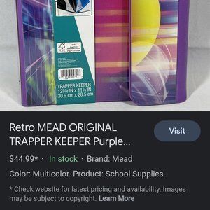 Vintage Trapper Keeper binder portfolio in great condition. Donated to the shop, only missing outer packaging. All inserts intact. Trapper keeper is an 80s/90s school/work binder that is no longer made. Trapper keepers have really cool designs and velcro flap. This item design is neon purple sunset. Nice retro piece of school or work. Trapper Keeper by Mead.