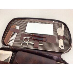 Vintage Travel Toiletry Kit Brown Leather Set