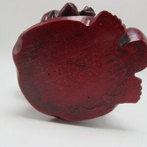 Nice statue is appx. 5 1/2 inches tall and weighs almost 2 pounds. It is made of a resin with a red/brown glaze made to look like cinnabar. Piece is in excellent condition with no markings. Nice gift for a traveler!!