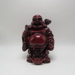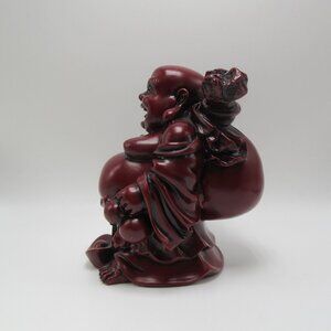 Vintage Traveling Laughing Buddha resin 'cinnabar' figurine - 5 1/2"