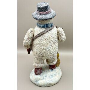 Vintage Traveling Snowman Christmas Figurine Toy Bag Glitter Finish CJF