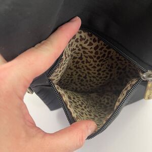 Vintage Travelon Crossbody Sling Bag Purse Black w/ Leopard Print Interior