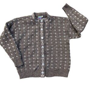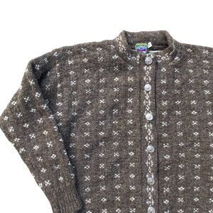 Vintage Traverse Bay Wool Fair Isle Birdseye Cardigan Brown Button Old Money-M