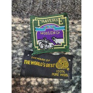 This vintage Traverse Bay Woolen Co. sweater showcases a classic checkerboard pattern, crafted from 100% pure wool for warmth and durability.