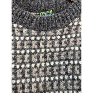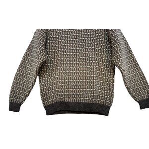 Vintage Traverse Bay Woolen Co. 100% Pure Wool Checkerboard Sweater Gray Tan