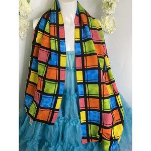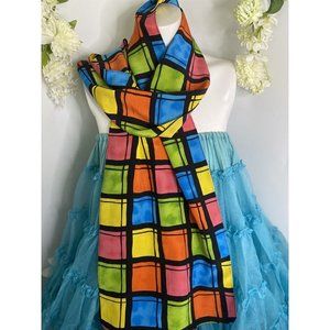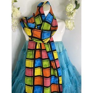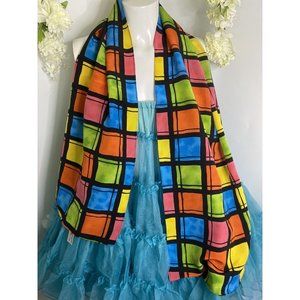Vintage Travis Ayers Plaid Pattern 100% Silk 12 x 54 Rectangle Scarf Mod Multi