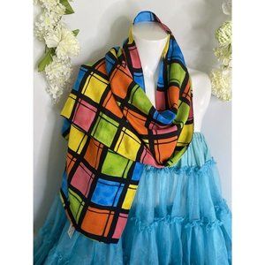Vintage 1970 Style Travis Ayers Plaid Color Block Pattern 100% Silk 12" x 54" Rectangle Scarf Mod Multi . Excellent new condition with no damage, stains, tears or odors and original tag attached. Just Special!!!