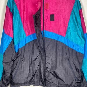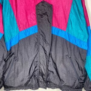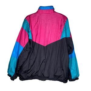 Vintage Traxton Jacket Zip Up Windbreaker Black Pink Blue Size Large VTG