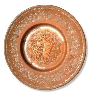 Vintage Tray Copper Persian Round with Tin Wash Deer or Antelope Design JH1334