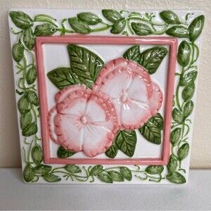 Vintage Treasure Craft Pink Green Floral Trivet Decor Wall Art Ceramic Tile
