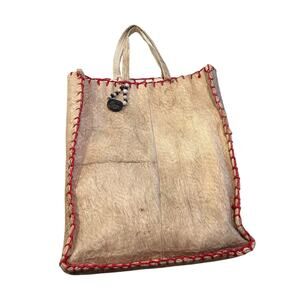 Vintage Tree Bark Natural Fiber Tribal Tote Bag Beige Red Handmade Art to Wear